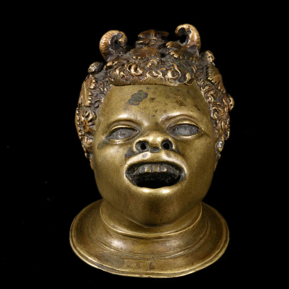 Cette lampe à huile d'une rare élégance, façonnée en forme de tête de satyre, est une création exceptionnelle attribuée au talentueux sculpteur de Padoue, Severo da Ravenna. Datant du premier tiers du XVIe siècle, elle trouve son origine dans la riche région artistique de l'Italie du Nord, probablement à Mantoue. Cette pièce remarquable se distingue par des caractéristiques artistiques et stylistiques singulières, témoignant de la maîtrise technique et créative de son créateur.